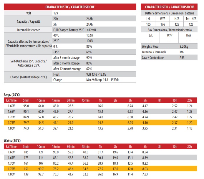 Capacità da 26Ah per servizi e standby