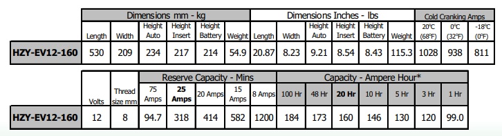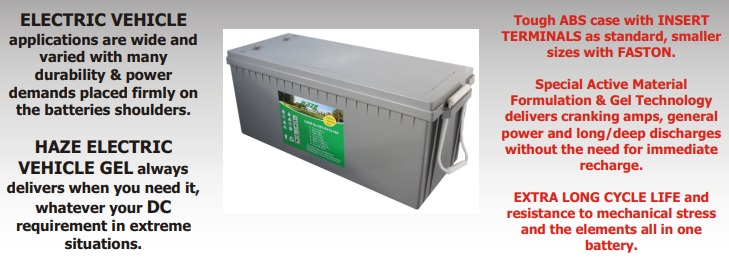 Batterie Haze 12V 191Ah Gel CP. HZY12-160EV Gel Cicliche VRLA Ermetiche al piombo, adatte per Pulizia industriale, Veicoli elettrici, Nautica e Camperistica . Hanno una tensione di 12V, una capacità di 191Ah/20h e dimensioni di 530 x 209 x 214 mm per 53.70 kg di peso.