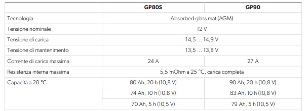 Le batterie sono realizzate con tecnologia AGM (Absorbed Glass Mat) e sono completamente sigillate. Le batterie