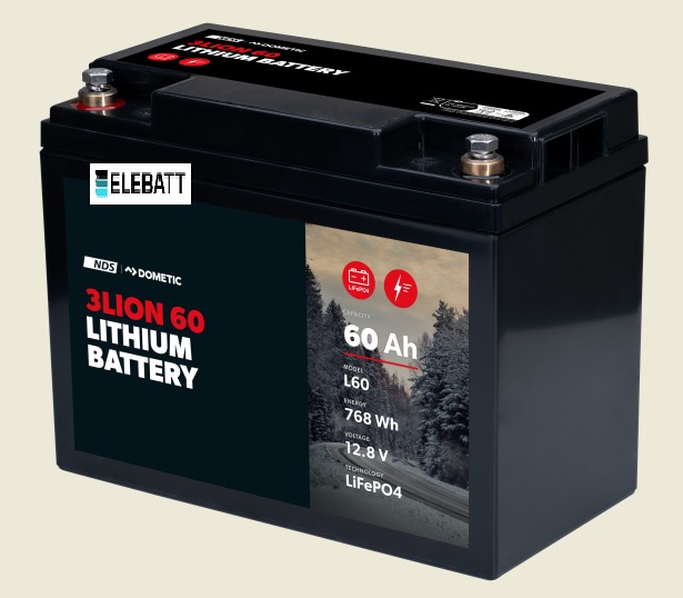 Batteria NDS L-60 LiFePO4 60Ah, al Litio, 12V 60Ah. Completamente esente da manutenzione. Include la 3LION Battery e il Black Box con display. Ideale per servizi camper. Codice Dometic 9620008558.