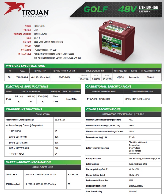 Se stai cercando le Batterie Trojan Litio 48V 30Ah TR- GC2-48-G scegli la qualità e l’affidabilità che solo Elebatt.it può offrire. Non perdere l’opportunità di avere una batteria che dura nel tempo e che ti supporta nelle tue esigenze energetiche quotidiane. Acquista ora o contattaci per maggiori informazioni!