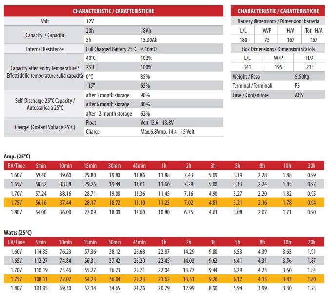 • Capacità: 18Ah/20h