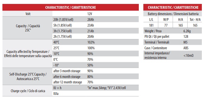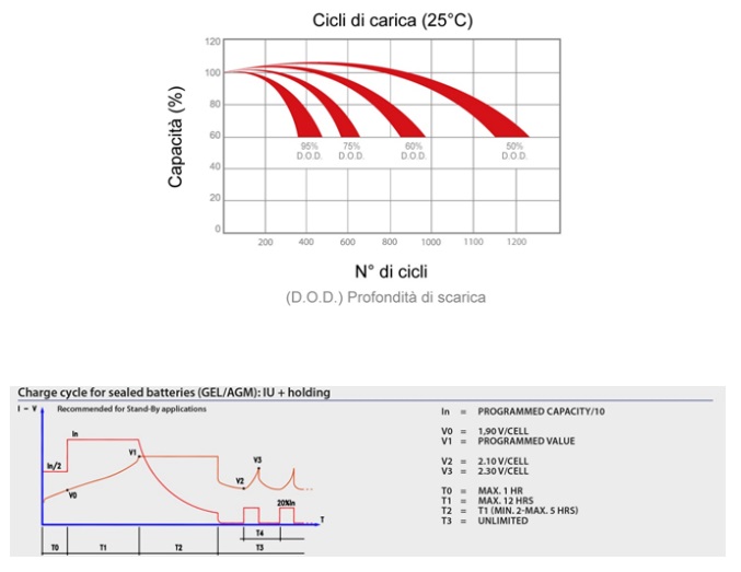 Inoltre per ciclo di carica e taratura carica batteria, vedere schede tecniche batterie
