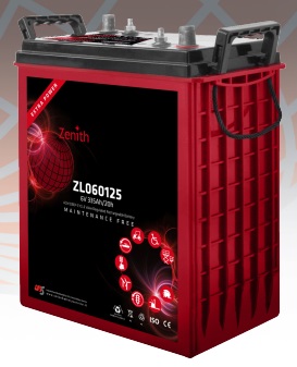 Batteria Zenith 6V 335Ah AGM VRLA ciclica al piombo ermetica CP. ZL060125, adatta a impieghi ciclici come la trazione leggera e l’energy storage. Hanno una tensione di 6V, una capacità di 335Ah/20h, un terminale DT e dimensioni 295 x 178 x 345 mm (368 mm altezza con terminali inclusi).