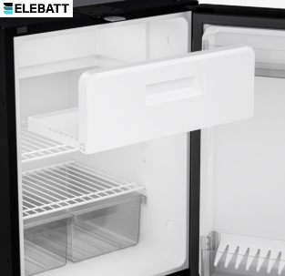 DOMETIC NRX 80C ha un design innovativo ed è ad alta efficienza energetica: questo intelligente frigorifero a compressore vanta 75 l di capacità. La porta senza cornice con frontale argento scuro e maniglia a tutta larghezza si apre su un interno versatile. Cella freezer da 6,6 l facilmente amovibile per sfruttare l’intera capacità del box.