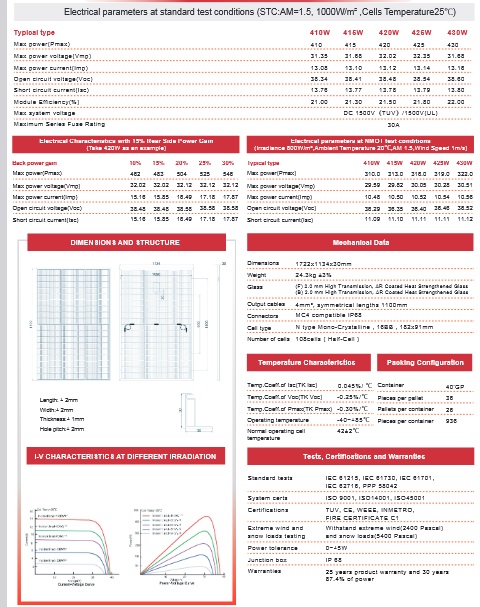 È caratterizzato da prestazioni elevate con sovradimensionamento del lato fotovoltaico del 150% e sovraccarico del 110% CA.